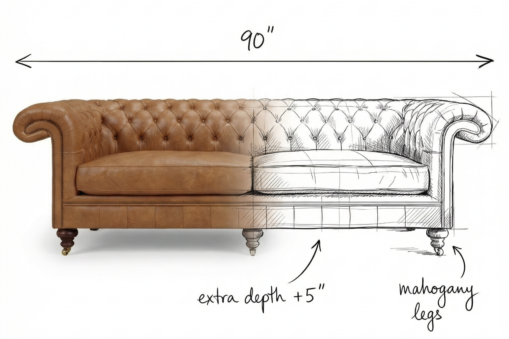 Tufting style, arm design, cushion fill, and overall silhouette.